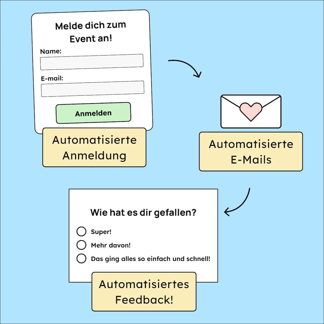 Wir erleben oft, dass öffentliche Stellen das Problem haben, dass viele Prozesse, noch manuell gemacht werden. Wir helfen euch, Automatisierungen sinnvoll einzusetzen, zum Beispiel um sich bei Events anzumelden oder Stellen auszuschreiben.